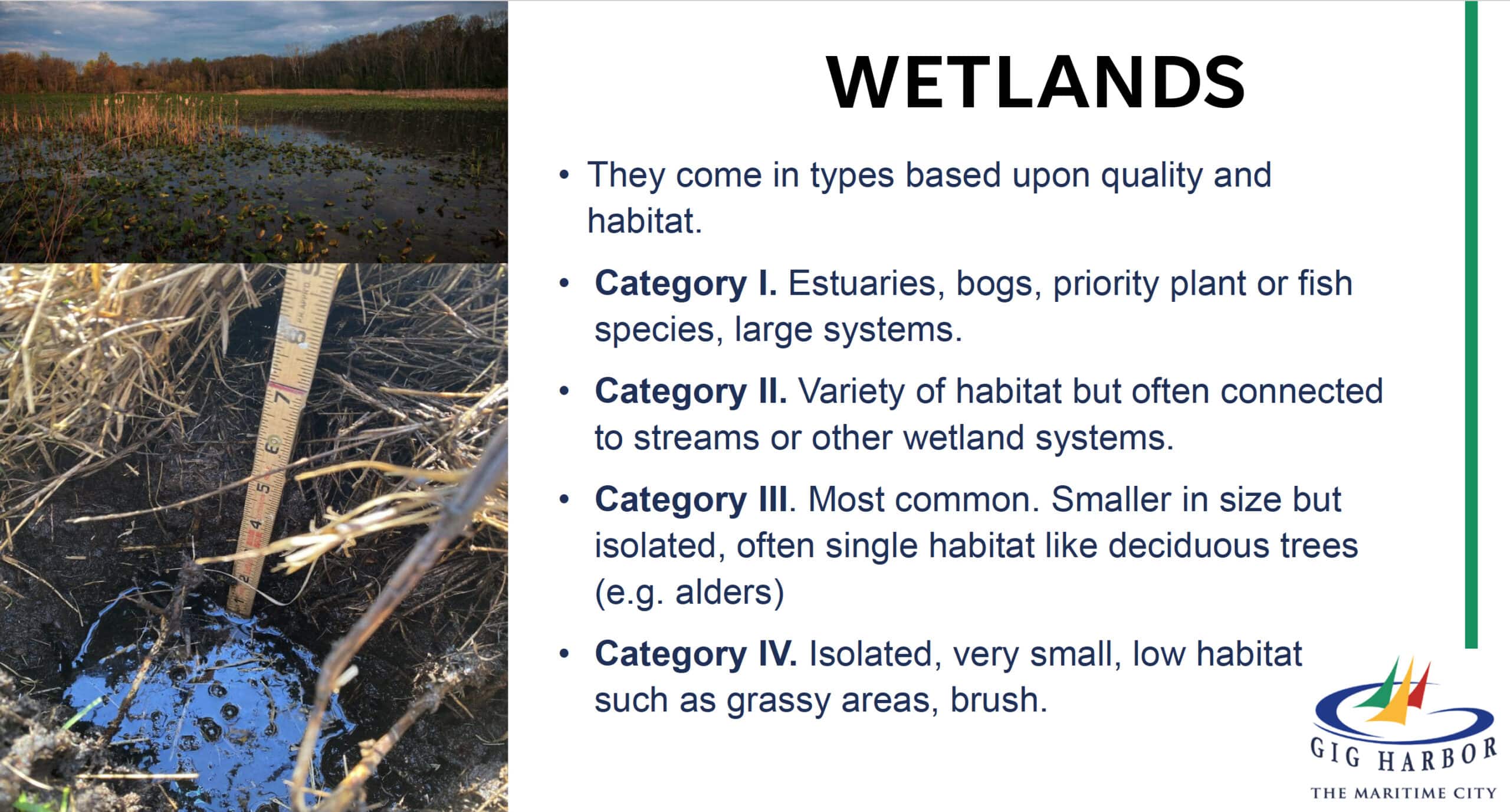 The city of Gig Harbor is considering code updates that would increase protections for environmentally sensitive areas, such as wetlands.